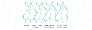 There are several degrees of ptosis related to the crease beneath your breast tissue, e.g. along the rib cage under your breast (the inframammary crease or fold – IMF).